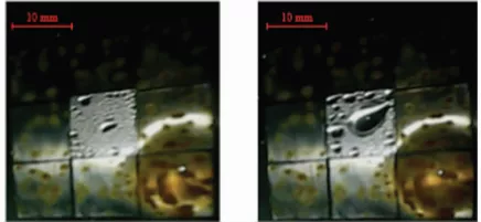 根据液滴的分布情况,可将8个X65试片分成3类。第一类为完全没有液滴覆盖的试片,包括1?2?3?4?6号试片;第二类为部分被液滴覆盖的试片,包括5?7号试片;第三类为完全被液滴覆盖的试片,为8号试片。