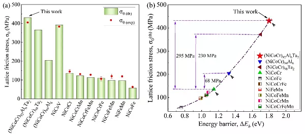 图1. Al/Ta合金化效应显著提高基体NiCoCr合金晶格摩擦力