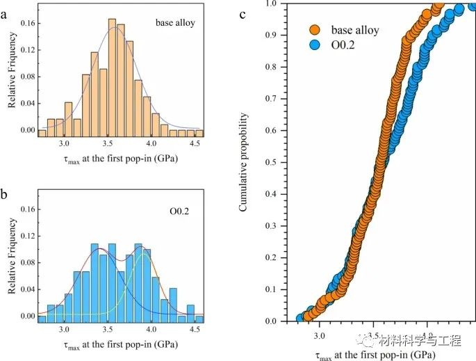 图2 基合金纳米压痕探针τmax的相对频率分布。