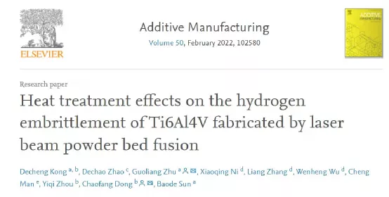 相关研究以题“Heat treatment effects on the hydrogen embrittlement of Ti6Al4V fabricated by laser beam powder bed fusion”发表在金属顶刊Additive Manufacturing上。