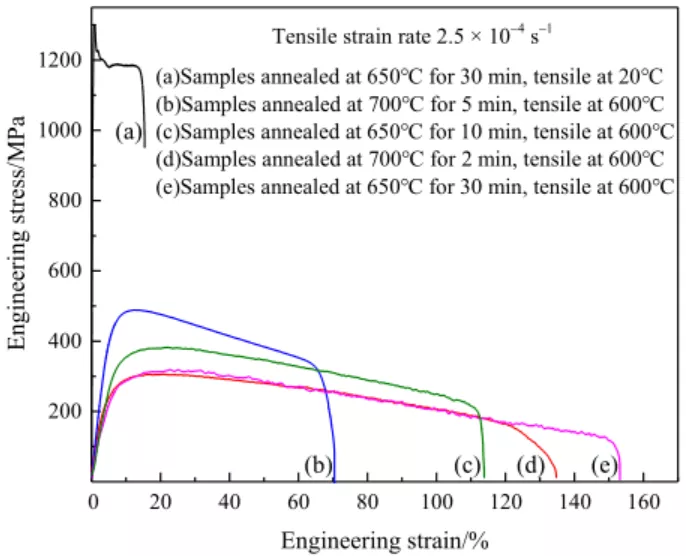图4纳米/亚微米晶304不锈钢不同温度下的拉伸曲线