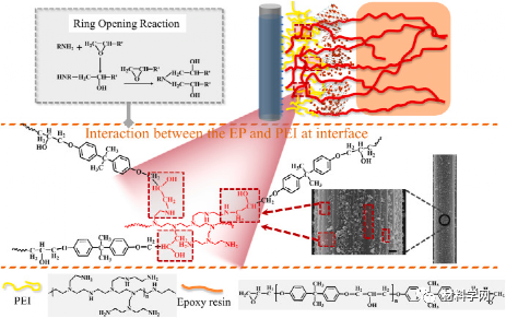 通过将纳米材料与低刚度材料相结合来构建界面,有望成为提高材料韧性和强度的策略。对于CFRPs,具有反应性官能团的柔性聚合物可用作低刚性组分。已经存在由氢氧化镍(Ni(OH))形成的界面层和聚乙烯亚胺(PEI),GO和超支化聚甘油(HPG),PEI和纳米二氧化硅(SiO2)。聚醚胺(PEA)/GO的界面层也被采用,其中构造(PEA/GO)9 逐层自组装提高了界面剪切强度(IFSS)和界面韧性(G集成电路)分别增长了67.7%和129%。这些改进归功于更好的相容性、机械联锁、强大的化学键和纳米颗粒增强。但对界面相互作用的部分解释,特别是对机械联锁的解释,及其对CFRPs界面性能的影响尚不清楚,缺乏直观的实验证据。在此基础上,构建了一种由反应性柔性聚合物和纳米材料形成的新型可控间相。