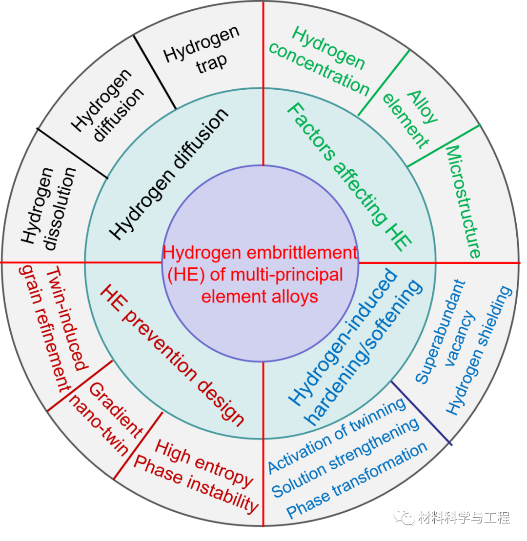 多主元合金具有优异的物理、化学和机械性能。其作为一种新型结构材料,在核能、氢能和石油化工等领域具有潜在的应用前景。然而,合金构件暴露在上述应用相关的工作条件下,氢脆是合金典型的失效方式。自2004年以来,高熵合金的氢脆才被研究者们关注,且近几年来对多主元合金氢脆的研究越来越多,然而,关于高熵合金氢脆综述的报道较少。