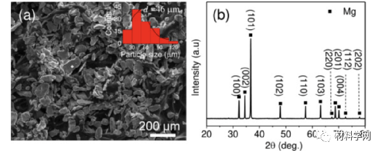 图 1所示为 (a) 直径为 46 μm 的原始 Mg 微粒;(b) Mg 微粒的XRD图。
