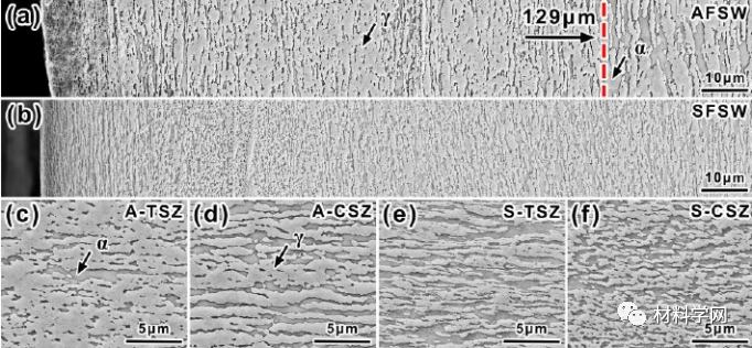 (4) SFSW中的晶界强化和位错强化显著促进了强度的增加,而较高的塑性主要是由均匀分布的由α和γ相组成的超细组织和相对较低的残余应力以及SZ和TMAZ等硬区尺寸减小引起的应变硬化能力的增强。