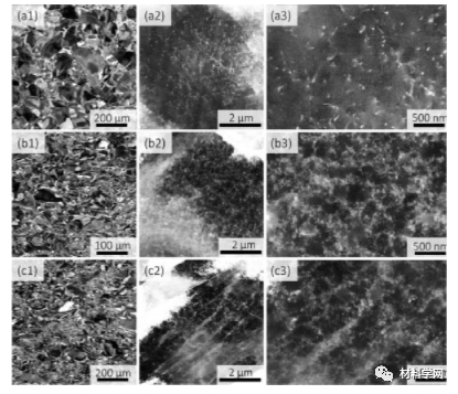 图 3。小晶粒 NiCoCrFe 的变形亚结构。(a) ~10% 应变的 ECCI 图像,(b) ~30% 应变的 ECCI 图像,和 (c) ~50% 应变的 ECCI 图像。