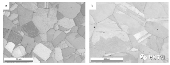 图 11。不同晶粒尺寸的 Ni 2 CoCrFe HEA 的初始显微组织。(a)~17μm和(b)~172μm。