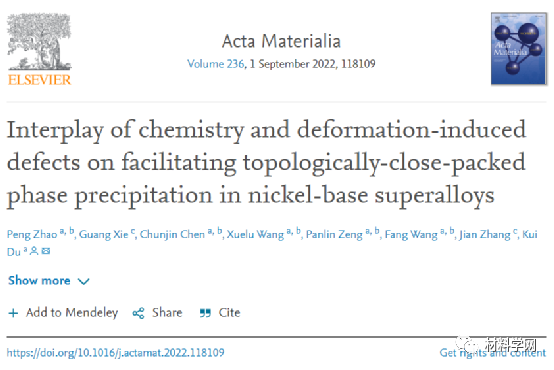 相关研究成果以题“Interplay of chemistry and deformation-induced defects on facilitating topologically-close-packed phase precipitation in nickel-base superalloys”发表在金属顶刊Acta Materialia上。