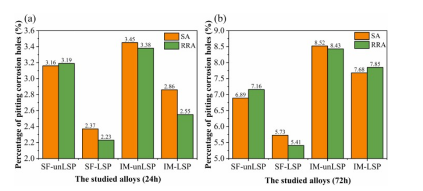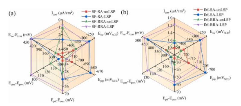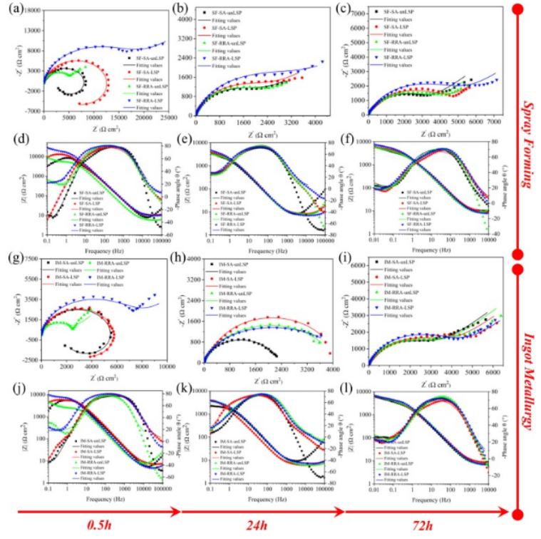 (1)LSP显著提高了所研究合金的综合耐腐蚀性,通过CP测试的腐蚀电流密度降低和EIS测试的极化电阻增加等多个参数验证。