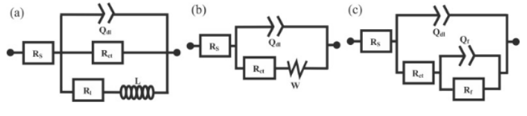 图 13。用于拟合EIS的等效电路来自不同合金的几次浸泡时间:(a)0 小时的 IM-SA 和 SF-SA 样品;(b) 0 小时的 IM-RRA 和 SF-RRA 样本,24 小时的所有 SF 样本和 72 小时的所有样本;(c) 所有IM样本 24 小时。