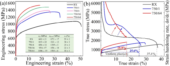(1) 强化机制理论计算表明纳米共格相贡献了最大的强化效果,并与其他强化机制的协同效应使合金具有高强度(YS~1.0GPa,UTS~1.5GPa)的同时依然保持较高的塑性(~20%);