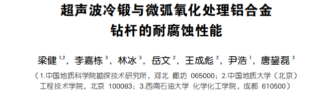 最新成果超声波冷锻与微弧氧化处理铝合金钻杆的耐腐蚀性能,发表在中文EI期刊《表面技术》