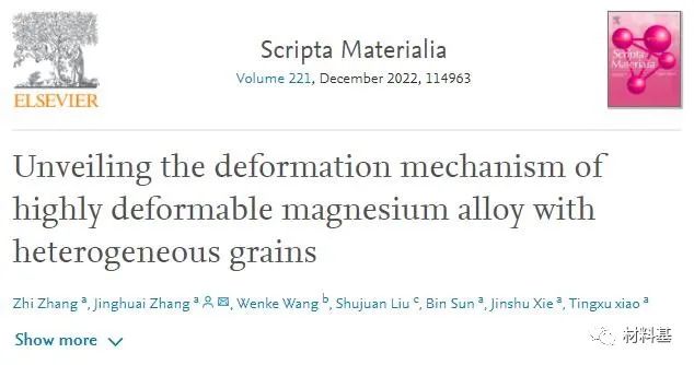 相关研究成果以题“Unveiling the deformation mechanism of highly deformable magnesium alloy with heterogeneous grains”发表在国际著名期刊Scripta Materialia上。