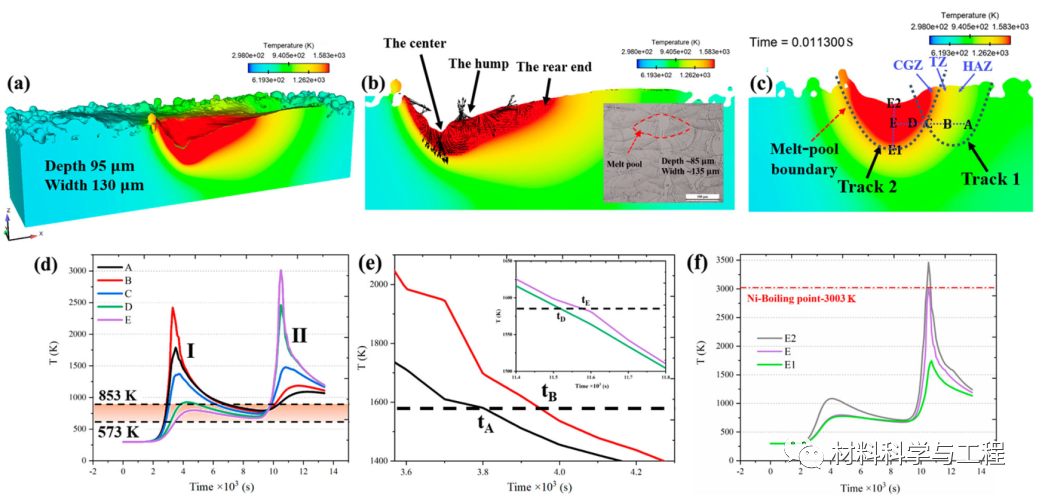 图5.相邻熔池的温度场模拟结果以及功能基元形成的热历史条件