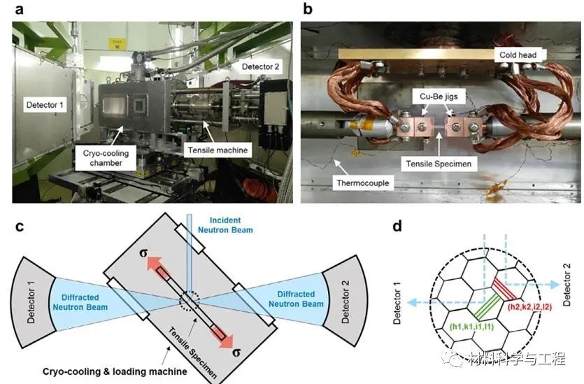 图1低温原位中子衍射实验装置图及工作原理示意图(@J-PARC)