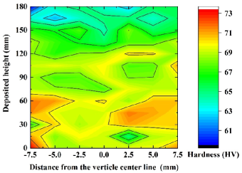 图4 WAAM制备的Mg-4Y-3RE-0.5Zr合金在沉积高度方向上的显微硬度分布