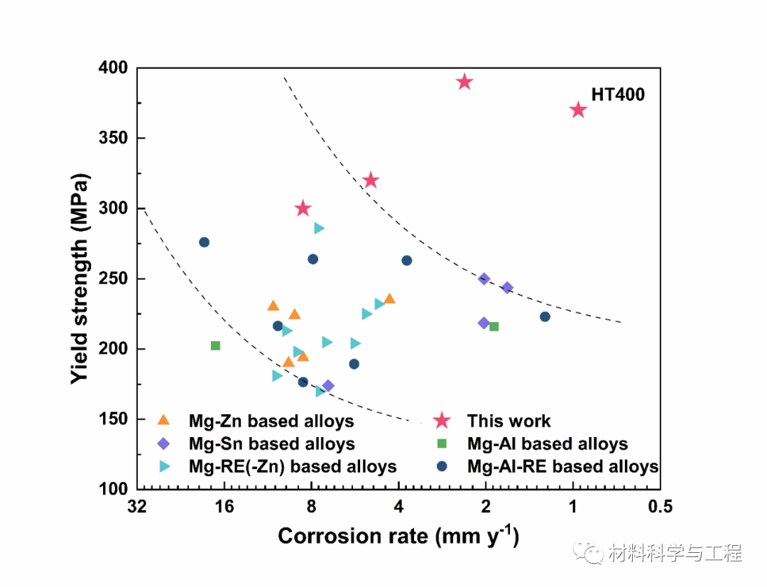 图9 类似工艺制备的镁合金腐蚀速率-屈服强度图