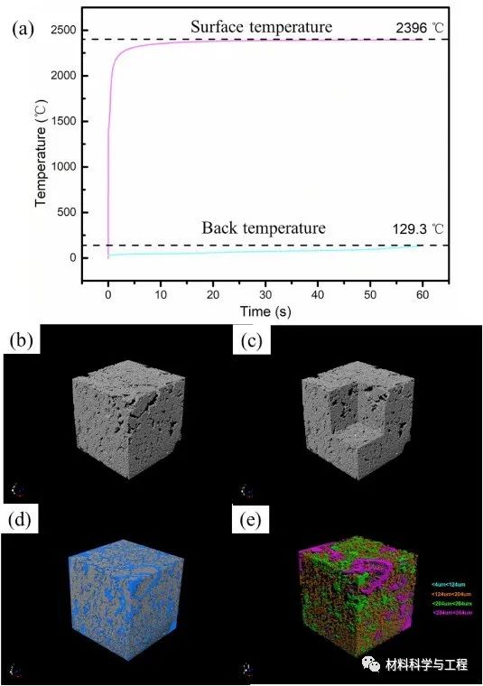 陶瓷基隔热材料因具有耐高温、高强和低导热率,在高温隔热领域被广泛关注并得到应用。其中最具有代表性的两类是陶瓷基隔热瓦和陶瓷气凝胶隔热材料。然而,陶瓷基隔热材料在极端环境下的热稳定性较差,在超高温环境下(2000℃以上)容易软化和内部孔隙结构坍塌,难以起到耐高温抗冲刷的作用。这严重限制了其在航天、航空等领域的应用。因此,要求材料具有优异隔热性能的同时还需赋予其耐超高温性是极具挑战性的。