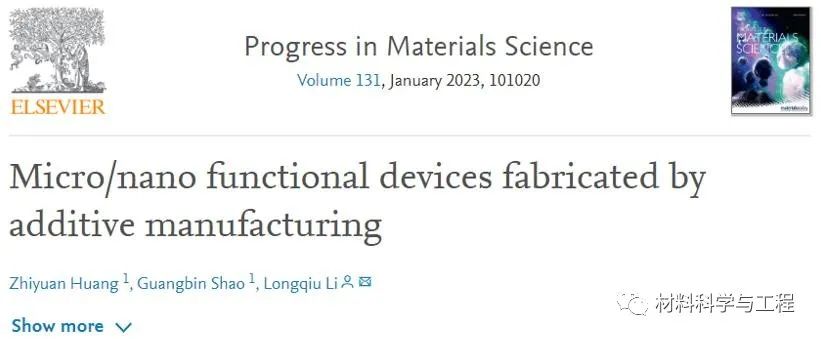 近日,哈尔滨工业大学李隆球教授团队在国际材料科学领域顶尖综述期刊《Progress in Materials Science》(最新IF=48.165)上发表题为《Micro/nano Functional Devices Fabricated by Additive Manufacturing》的综述文章(非邀稿),全文约2.8万字,包括6大章节,18个小节,360余篇参考文献,哈尔滨工业大学博士生黄致远和邵广斌为论文的共同第一作者,哈尔滨工业大学、国家杰青获得者李隆球教授为论文的通讯作者。该论文获得了国家杰出青年科学基金(52125505)、国家自然科学基金联合基金(U20A20297)和广东省重点领域研发计划(2020B090923003)等项目的资助。