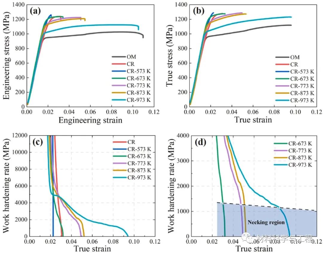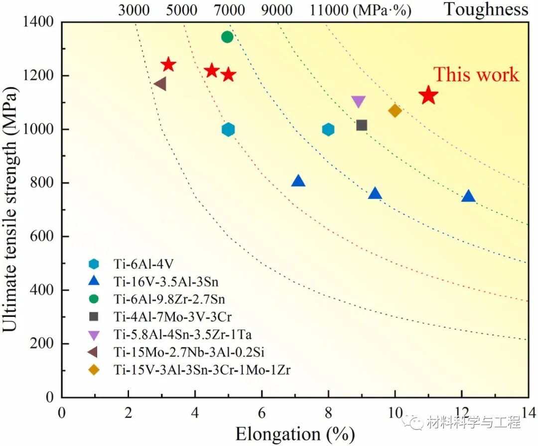 通常,经历过严重塑性变形的金属表现出更高的强度,但其EL和加工硬化率降低。在较高温度下退火后,低位错密度和异质组织界面为加工硬化提供了足够的空间,增强了延展性。从工业制造的角度来看,结合工艺强化低合金钛合金可能是未来大规模生产更经济可行的方法。