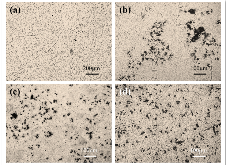 不同预处理工艺铸态LA103 TiB 2 /LA103复合材料颗粒分散示意图