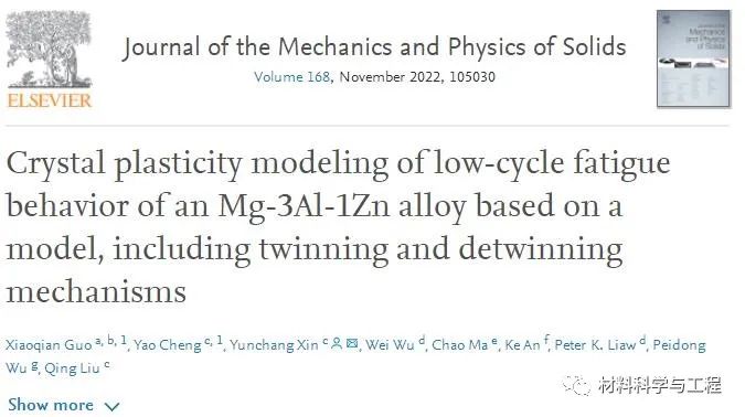 南工大&中国矿大《JMPS》:镁合金低周疲劳行为的晶体塑性模拟!