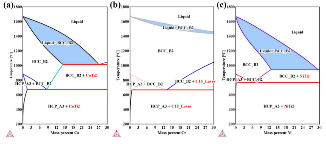 图1 (a)Ti-Co,(b)Ti-Cr和(c)Ti-Ni二元合金的相图。