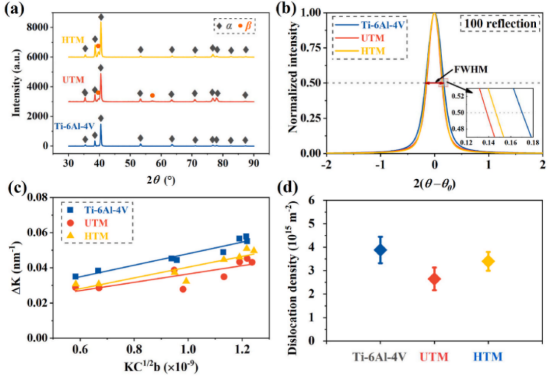 (2)与Ti-6Al-4V合金相比,织构强度和UTM合金的变体选择程度减弱和IV型晶界的分数(63.26?/[-10 5 5–3])减少了。此外,β相的比例LDED制造的Ti-6Al-4V合金从1.1%增加到3.9%添加了 1 wt% CoCrNi,这归因于加速AEP对马氏体α′相的原位分解共析元素(即钴、铬、镍)。