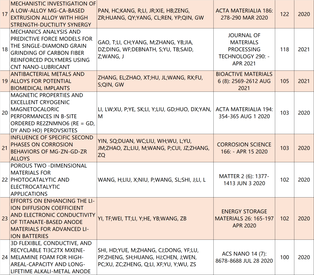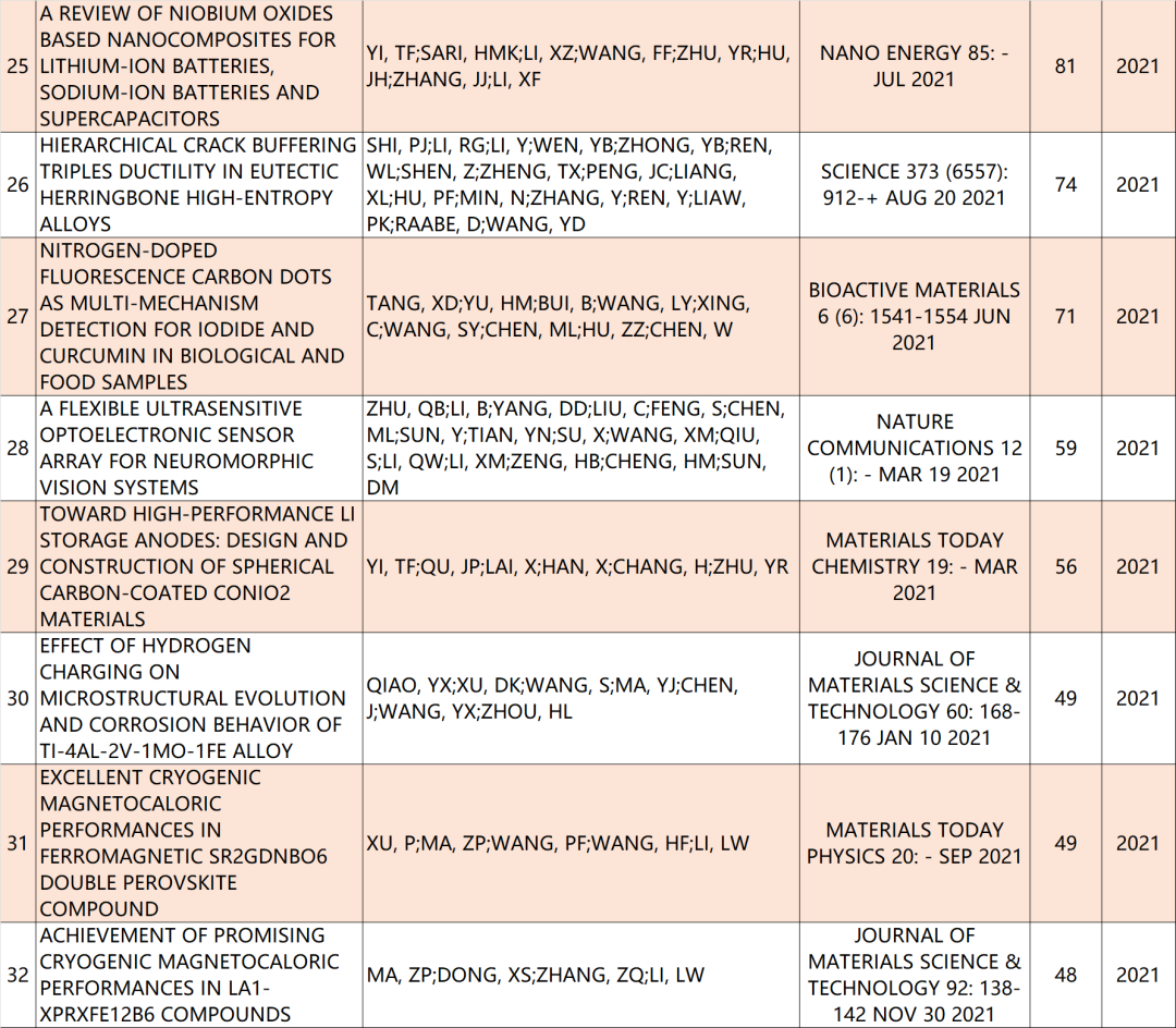 本期材料科学学科高被引论文如下: