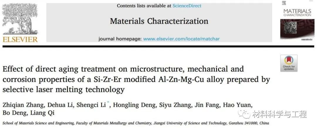 江西理工大学:增材制造7系铝合金的直接时效热处理及疲劳裂纹扩展行为