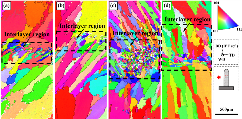 第一作者:席乃园 (博士生) 通讯作者:黄科 (教授) 通讯单位:西安交通大学机械制造系统工程国家实验室 DOI: 10.1016/j.jmst.2022.09.026 01 全文速览 西安交通大学卢秉恒院士团队黄科教授课题组设计了一种摆动打印+层间冷却+短时热处理的新型综合策略,降低增材制造构件内部气孔及裂纹,显著提升构件力学性能。相关论文以题为 “Enhanced comprehensive properties of directed energy deposited Inconel 718 by a novel integrated deposition strategy” 发表在Journal of Materials Science & Technology期刊。论文第一作者为2019级博士研究生席乃园,论文通讯作者为西安交通大学黄科教授。 02 研究背景 Inconel 718 (IN718) 高温合金因其优异的高温强度、抵抗蠕变和疲劳特性等已被广泛应用于航空航天、核电化工等诸多领域。使用电弧熔丝增材制造技术快速制备/修复IN718大型零部件有望成为一种可靠的替代性工艺,以解决传统制造方式制造周期长、材料利用率低等劣势。 然而,传统电弧增材制造过程复杂的热历史和高热输入条件使得合金内部元素偏析严重,低熔点共晶相富集,从而诱发微裂纹。不合理的工艺过程还会造成大量孔隙缺陷的产生,进而制约该技术的广泛推广。 03 图文解析 图1 (a)传统平动制造工艺示意图;(b)摆动+层间强制冷却策略示意图 图2 使用光学显微镜统计样本缺陷分布及孔隙率特征:(a)平动工艺;(b)摆动工艺 图3 SEM结果显示摆动模式具有更低的Laves相体积分数和更少的长链Laves比例:(a)(c)平动工艺统计结果;(b),(d)摆动工艺统计结果 图4 EBSD结果显示摆动工艺具有更宽的层间细晶带和更小的层间等轴晶组织:(a)平动沉积态;(b)平动热处理态;(a)摆动沉积态;(b)摆动热处理态 图5 采用摆动+层间冷却+短时热处理方式获得优异的强度-塑性权衡:(a)沉积态统计结果对比;(b)热处理态统计结果对比 04 结论展望 作者们采用摆动打印模式有效地促进熔池扩展,提高搭接润湿性,防止堆积溢流,从而获得较高的制造几何精度。此外,极低的热输入和较短的气孔逸出距离将孔隙类缺陷减少了77.78%,在IN718中最常见的裂纹缺陷也被完全消除。强制层间冷却过程进一步提高了冷却速率,大幅降低微观偏析程度,减少长链状Laves相比例。最后经短工艺改性热处理后,沉积态试样的各向异性力学行为同样被消除。与传统平行模式样品相比,振荡路径样品的屈服强度和极限抗拉强度分别提高了5.75%和9.25%,延伸率显著提高了51.20%,获得了优异的强度-塑性权衡。这项工作为制造大型IN718零部件提供了可靠的工艺参考。 05 课题组简介 西安交通大学卢秉恒院士团队黄科教授在金属增材制造、塑性成形及组织性能调控领域国际知名SCI期刊Prog Mater Sci、Acta Mater、Virtual Phys Prototyp等发表论文70余篇,授权国家发明专利20余项。主持军委科技委基础加强重点项目课题,173技术领域基金项目,国家自然科学基金面上/青年等项目10余项,入选国家级青年人才计划。担任SCI期刊Metall Mater Trans A、Sci Rep、Mater Sci Technol编委,先进材料成形制造国际会议 (Thermec) 学术委员会委员。团队主要从事:(1)金属增材制造设计、工艺、装备及应用;(2)高性能金属形性协同调控;(3)激光冲击强化技术等领域研究。欢迎访问教师主页合作交流:http://gr.xjtu.edu.cn/web/ke.huang 06 引用本文