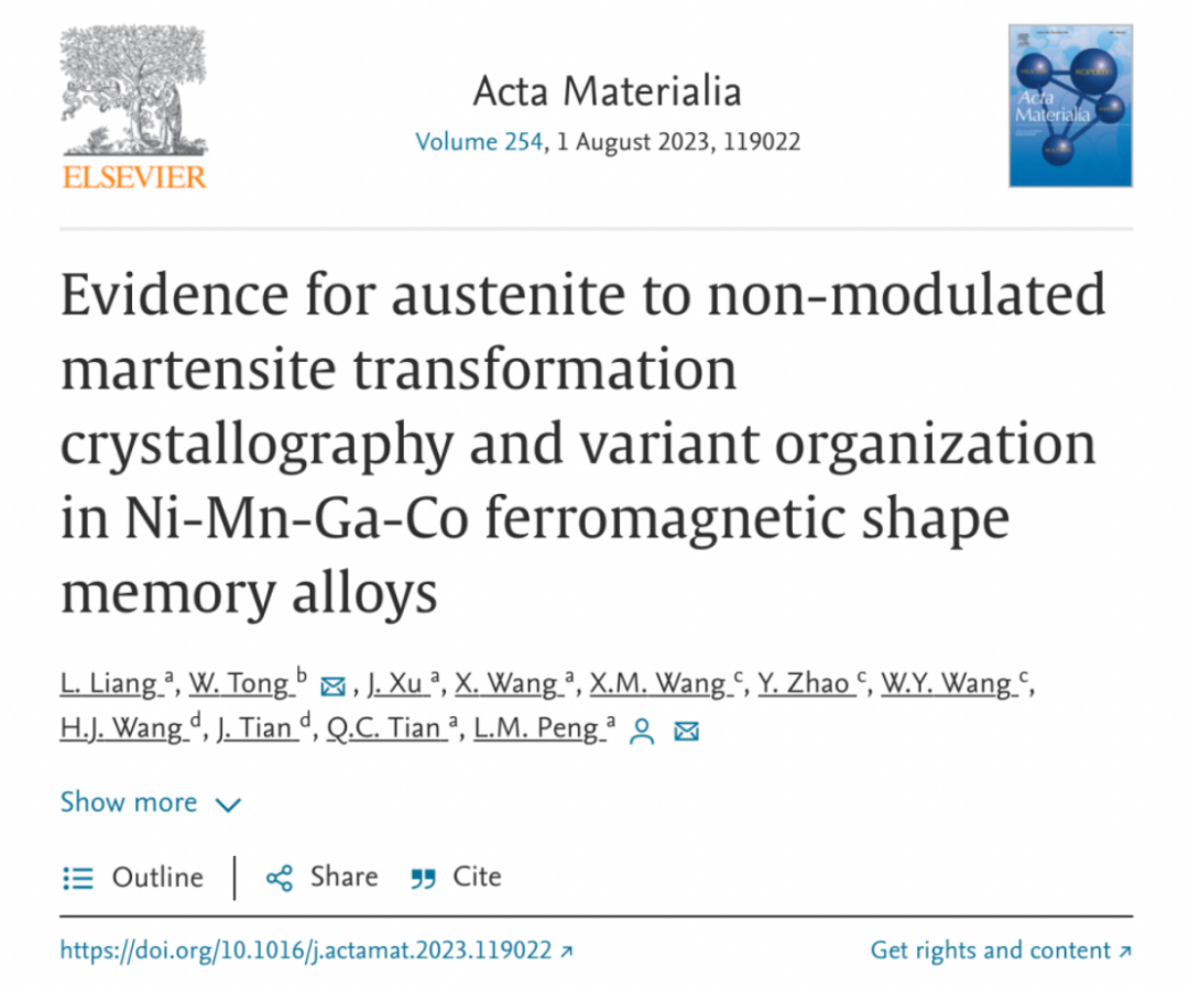 NiMn基形状记忆合金丰富的功能特性,如形状记忆效应、超弹性、磁电阻和弹性/磁热效应,主要因为外场触发的可逆热弹性马氏体相变( MT )。由于马氏体相变的集体性和位移性,母相奥氏体和马氏体通常遵循一定的取向关系( OR )和特定的相变惯习面。因此,由于两相之间的OR和对称性差异,可以从同一母体晶体中转化出固定数量的具有不同结晶取向的变体。人们经常观察到,在没有外部应力影响的情况下,为了最小化相变应变能,多个取向的变体倾向于组装成具有规则形状的组。因此,关于OR和相关变体组织的综合知识对于以最低能耗最大化功能为目标的合金优化设计至关重要。