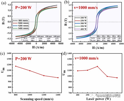 为了获得具有良好磁性-力学综合性能的Co47.5Fe28.5Ni19Si3.4Al1.6 高熵合金,北京科技大学材料基因组工程高精尖创新中心的张勇教授团队在该领域进行了研究。本研究对不同激光功率(200 W、250 W、300 W、350 W、400 W)和扫描速度 (800 mm/s、1000 mm/s、1200 mm/s、1400 mm/s) 下制备的Co47.5Fe28.5Ni19Si3.4Al1.6 HEA的组织演变、软磁性能和力学性能进行了分析,并对结果进行了系统检验。此外,还对Co47.5Fe28.5Ni19Si3.4Al1.6 HEA的软磁和力学机理进行了详细评述。本研究的结果有望为LPBF制备Co47.5Fe28.5Ni19Si3.4Al1.6 HEA的工业化应用做出贡献。