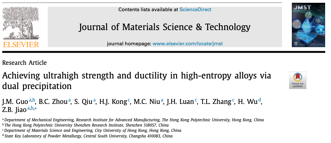 香港理工大学:通过双析出实现高熵合金的超高强度和延展性!