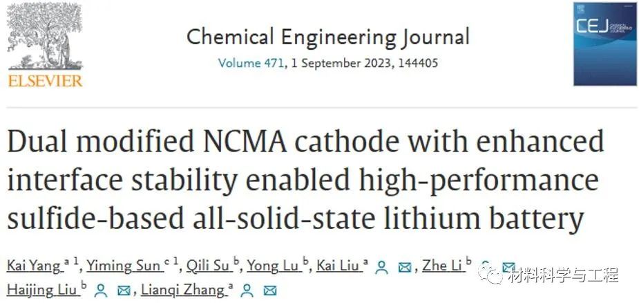 该成果在Chemical Engineering Journal期刊上以Dual modified NCMA cathode with enhanced interface stability enabled high-performance sulfide-based all-solid-state lithium battery为题发表,该文章的第一作者为杨凯(天津理工大学)和孙一茗(天津大学)。