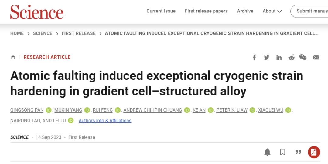 重磅!中科院金属所再发Science!金属材料强化领域重大发现!
