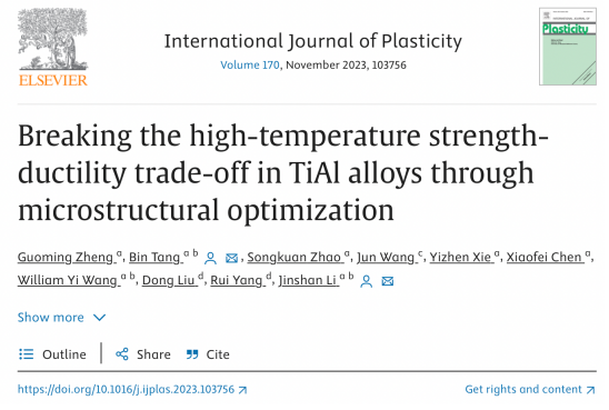 在本研究中,西北工业大学对所设计的T - T结构进行了微结构优化,提高了其在工作温度下的力学性能,解决了航空航天应用对增强TiAl金属间化合物强度/塑性的迫切需求。设计了一种通过改变时效温度和保温时间来控制PMs体积分数的固溶时效热处理工艺。令人惊讶的是,这种优化的T - T结构在750 ° C时表现出远优于LM的强塑性匹配,这在TiAl合金中从未报道过。通过微观表征详细阐明了力学性能、微观结构和变形机制之间的相关性。本研究可能为同步提高TiAl金属间化合物的强度和塑性开辟一条新的途径。相关研究成果以题“Breaking the high-temperature strength-ductility trade-off in TiAl alloys through microstructural optimization”发表在International Journal of Plasticity上。