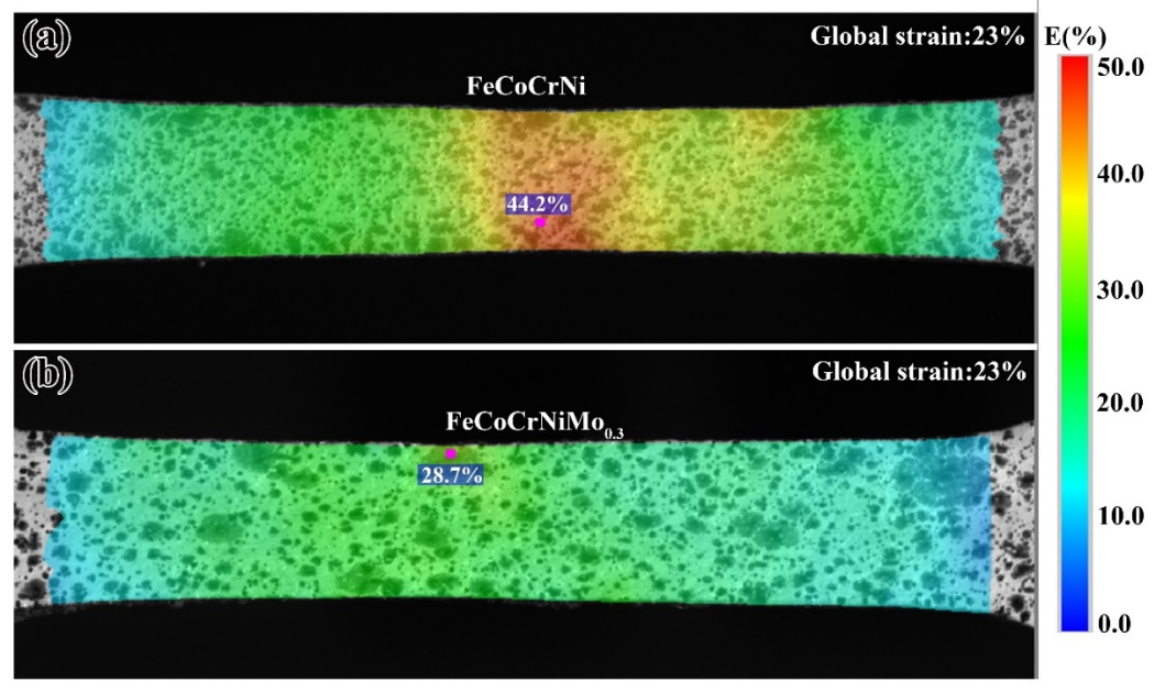 图4 两种HEA的原位DIC结果