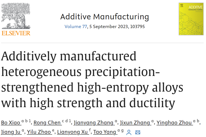 香港城市大学杨涛教授团队对此进行了研究,相关研究成果以题为“Additively manufactured heterogeneous precipitation-strengthened high-entropy alloys with high strength and ductility”发表在期刊Additive Manufacturing上。
