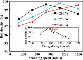 图3.打印工艺参数与试样相对密度的关系。