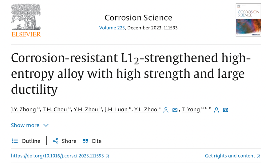 在这项工作中,杨涛教授团队开发了一种新型的L12强化的高熵合金,具有理想的耐腐蚀性和优异的机械性能,通过多尺度表征技术仔细研究了潜在的水腐蚀和变形机制。主要结论归纳如下: