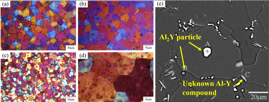 ( 4 )减少了大尺寸构件铸造中的宏观和微观偏析。大型铸件,如复杂的砂型铸造零件和用于变形加工的半连续铸造圆或棒坯,要求化学成分和晶粒组织从外表面到中心区域分布相对均匀。此外,在大型和复杂结构铸件的制造中,由于重力差异,RE元素和Mg之间的密度差异使其更容易偏析。因此,有效且均匀的晶粒细化是获得高质量铸坯的关键。