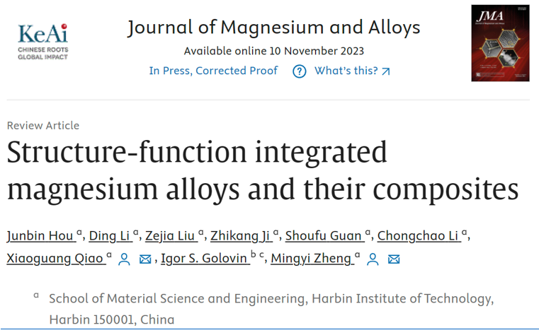 哈尔滨工业大学材料科学与工程学院单位郑明义作者对此进行了研究,相关研究成果以题Structure-function integrated magnesium alloys and their composites发表在Journal of Magnesium and Alloys期刊上