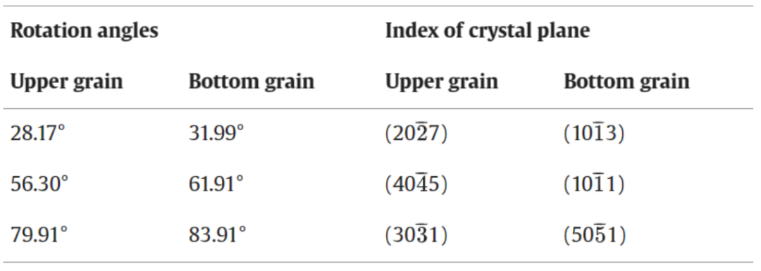 表1 [1210] ATGB双晶Mg模型的旋转角度和晶面折射率参数