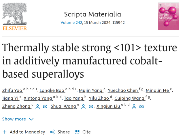 哈尔滨工业大学郑忠教授团队对此进行了研究,相关研究成果以题为“Thermally stable strong <101> texture in additively manufactured cobalt-based superalloys”发表在期刊Scripta Materialia上。
