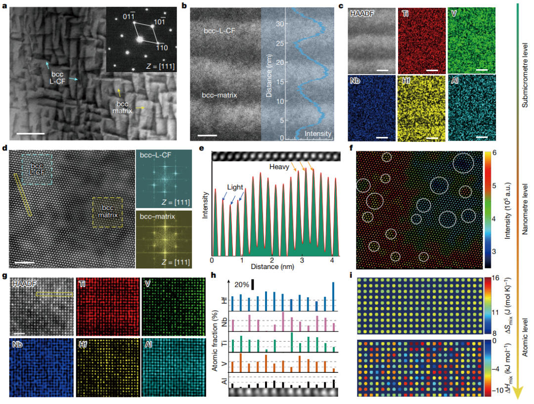 图2. HNTVA10合金中的多尺度的化学成分波动结构和多层异质结构。