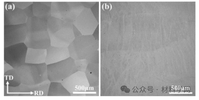 图1 ECC图像显示了溶于(a)和热轧(b)FeCrAl合金的显微组织。