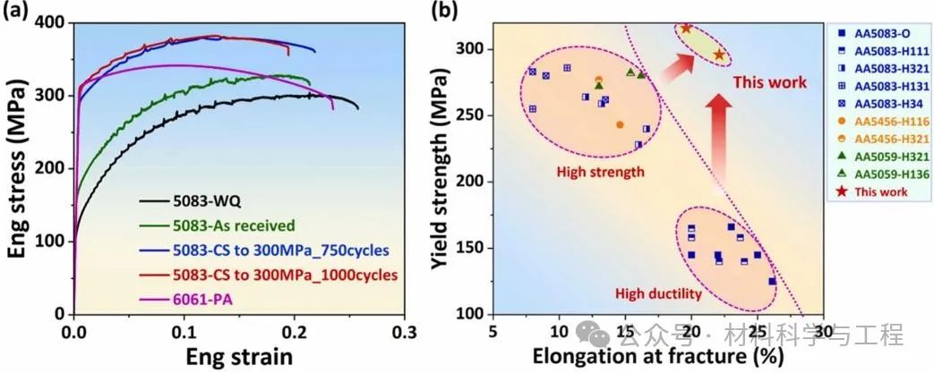 基于上述5xxx系铝合金目前存在的大家普遍关心的重要问题,东南大学材料科学与工程学院孙文文教授团队利用之前研究的室温循环强化的新加工工艺对5xxx系铝合金中常用的AA5083合金进行处理,该工艺能够应用在5xxx系铝合金上的前提是因为5xxx系铝合金为过饱和固溶体,在室温下Mg的析出具有强烈的热力学驱动力,而通过人工注入空位解决了动力学上原子扩散困难的问题。本工作正是围绕室温循环变形对AA5083合金微观结构的演变、强化机理与腐蚀机理的研究而开展。