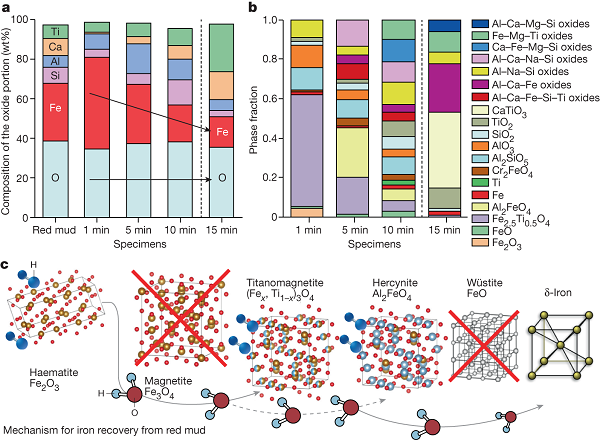 图2. 氢等离子体处理赤泥的相演化及铁回收机理 © 2024 Springer Nature
