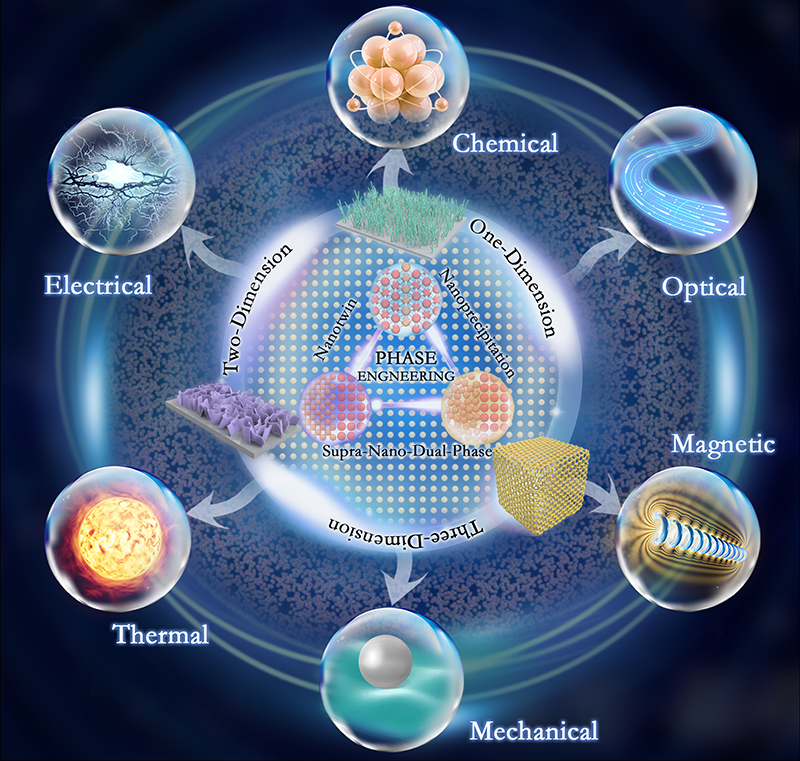纳米结构金属材料是现代纳米科学的热门研究领域。先进的材料分析技术极大的促进了(如像差校正透射电子显微镜和三维原子探针断层成像)纳米结构金属材料中相的精细调控。相尺寸、相分布和相变的设计可以精确调控纳米结构金属材料的变形行为和电子结构,进而成为改变材料物理化学性质的重要手段,例如由超纳双相玻璃-晶体结构实现的近理论强度,具有特定相构型的图灵催化剂所展现的稳定催化,以及纳米材料的非常规相变。这些进展让材料科学家认识到相工程在材料设计过程中的重要性,相工程也为高性能金属材料的开发提供了新的思路与科学启示。